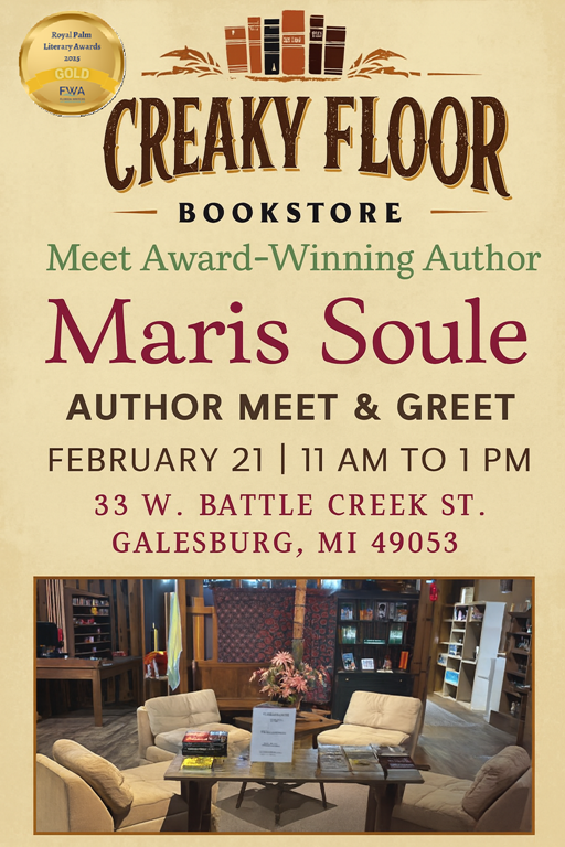 Then, last Saturday, February 21, I was at the CREAKY FLOOR BOOKSTORE in Galesburg, Michigan, for a two hour meet and greet. I had a wonderful time there, too. Friends I haven’t seen for years showed up. Readers and relatives. The bookstore needed more chairs. I was asked questions about my writing process, research, and if I was going to write any more P.J. Benson Mysteries (The CROW series) or a sequel to A KILLER PAST. They actually got me thinking of the possibility. At the end of the talk I autographed a few books and answered more personal writing related questions. We went over the two hours and bumped into the next scheduled writer. I would have stayed to listen to her, but a group grabbed me and took me to the PROSPECTORS COOK HOUSE, across the street from the bookstore, where we continued talking.
